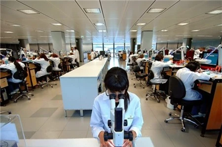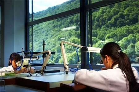 Bên trong xưởng sản xuất, mọi thứ rất sạch sẽ và được sắp xếp khoa học. Những người thợ đồng hồ đến từ khắp nơi trên thế giới, điều đặc biệt là có nhiều nữ hơn nam.