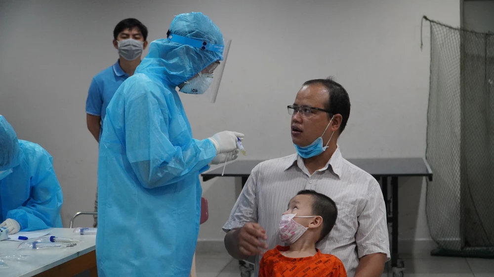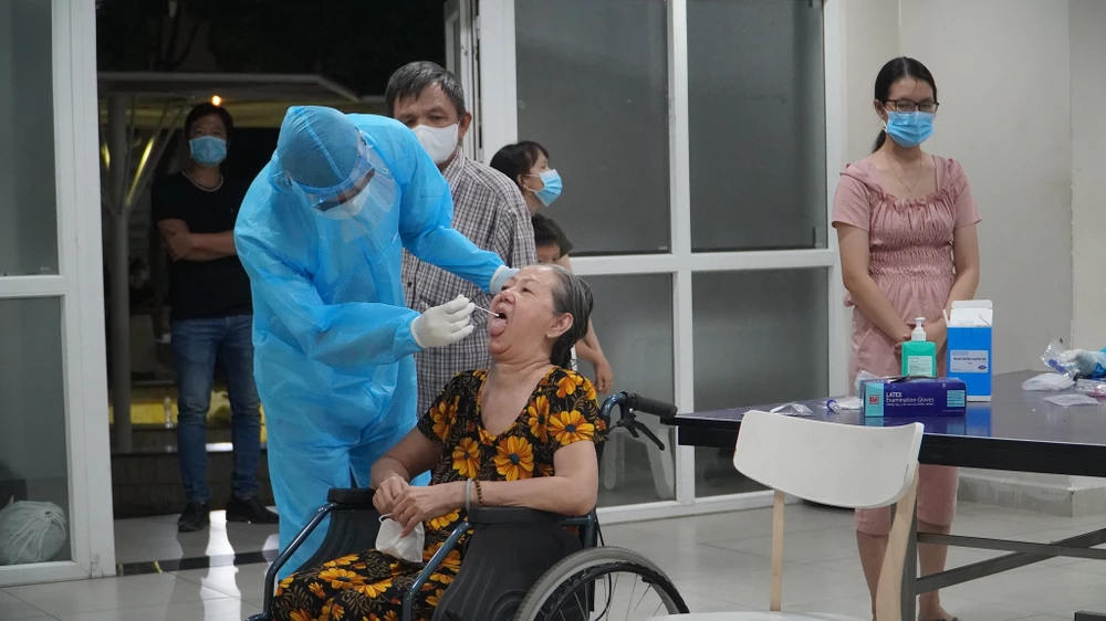 Trong ngày, Sở y tế TP.HCM đã huy động 40 đội nhân viên y tế từ các BV trong thành phố cấp tập lấy mẫu xét nghiệm các cư dân tại chung cư Sunview Town.