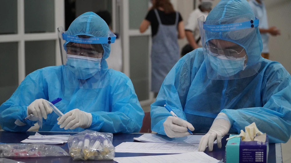 Mặc dù mệt những các nhân viên y tế vẫn cố gắng vì cộng đồng. Ảnh: MINH TÂM