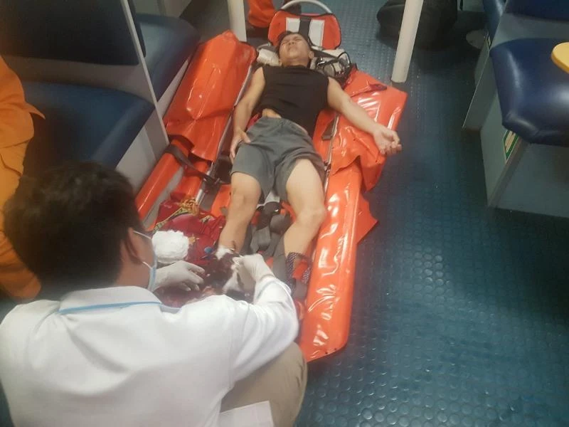 Tình trạng nạn nhân lúc này hết sức nguy kịch với vết thương hở chảy nhiều máu, có dấu hiệu nhiễm trùng, sức khỏe nạn nhân suy yếu. Sau khi trải qua ca cấp cứu để hồi sức và xử lý vết thương, nạn nhân được lực lượng cứu nạn hàng hải đưa lên tàu SAR 412 hành trình về đất liền.