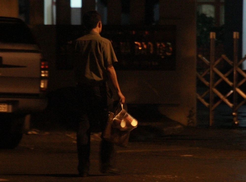 Do đã khuya, một cán bộ công an đi mua đồ ăn đêm để "tiếp viện"