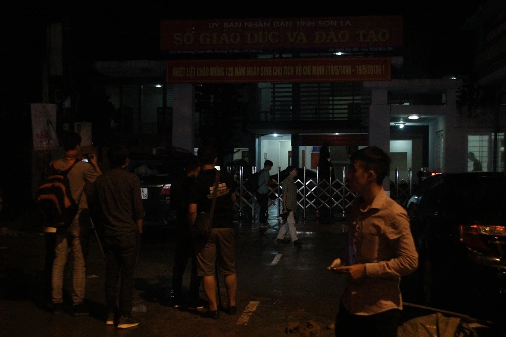 Rất đông phóng viên báo chí đứng chờ ở phía ngoài trụ sở Sở GD&ĐT tỉnh Sơn La