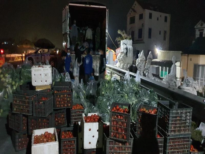 Rau, củ, trứng, trái cây của bà con Hải Dương được chở ra các tỉnh, thành như Hà Nội, Bắc Giang... để tiêu thụ. Ảnh: CTV
