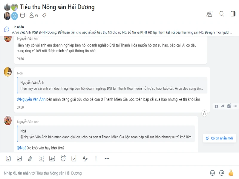 Cứ thế, các tin nhắn đề nghị giải cứu, đề nghị tháo gỡ khó khăn trong quá trình giải cứu, cập nhật quá trình hỗ trợ tiêu thụ... liên tục được gửi về nhóm chat để các thành viên cùng nắm được tình hình.
