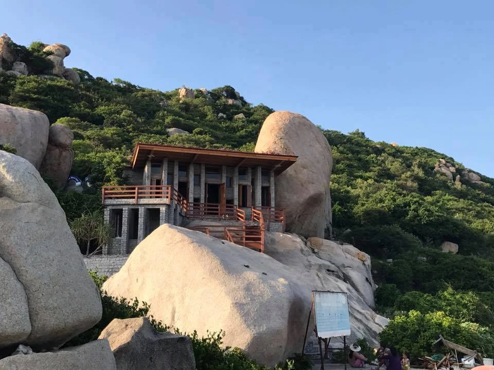 Nhà bảo tồn rùa nằm nép mình bên các tảng đá lớn, sát một bên trạm bảo vệ rùa thịt... Ảnh: LA HIÊN