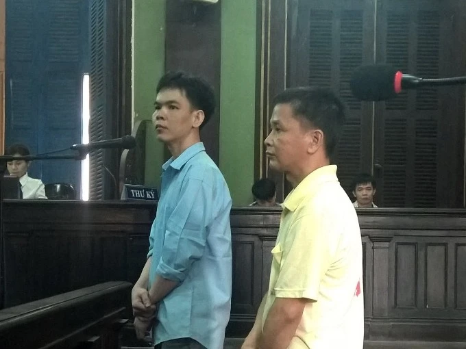 Bị cáo Hoài (áo xanh) và Khanh tại phiên xử