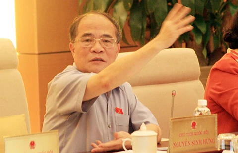 Chủ tịch QH Nguyễn Sinh Hùng đang phát biểu tại phiên họp. Ảnh: TRỌNG PHÚ