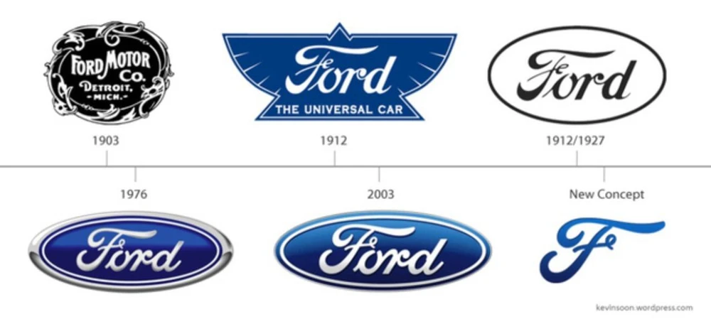 Sau nhiều lần thay đổi thì Ford vẫn luôn nhất quán trong việc đặt tên hãng trong logo để tôn vinh tên hãng xe và thể hiện sự tôn trọng của mình đối với từng phiên bản thiết kế. Logo hình oval màu xanh quen thuộc của Ford được sử dụng lần đầu tiên năm 1927. Nhưng chữ trên logo đã được sử dụng từ sớm hơn rất nhiều so với lịch sử hãng xe, vào những năm 1900.