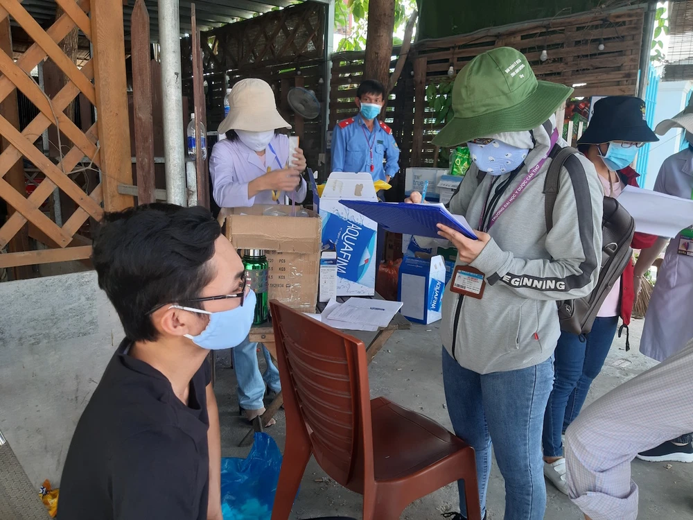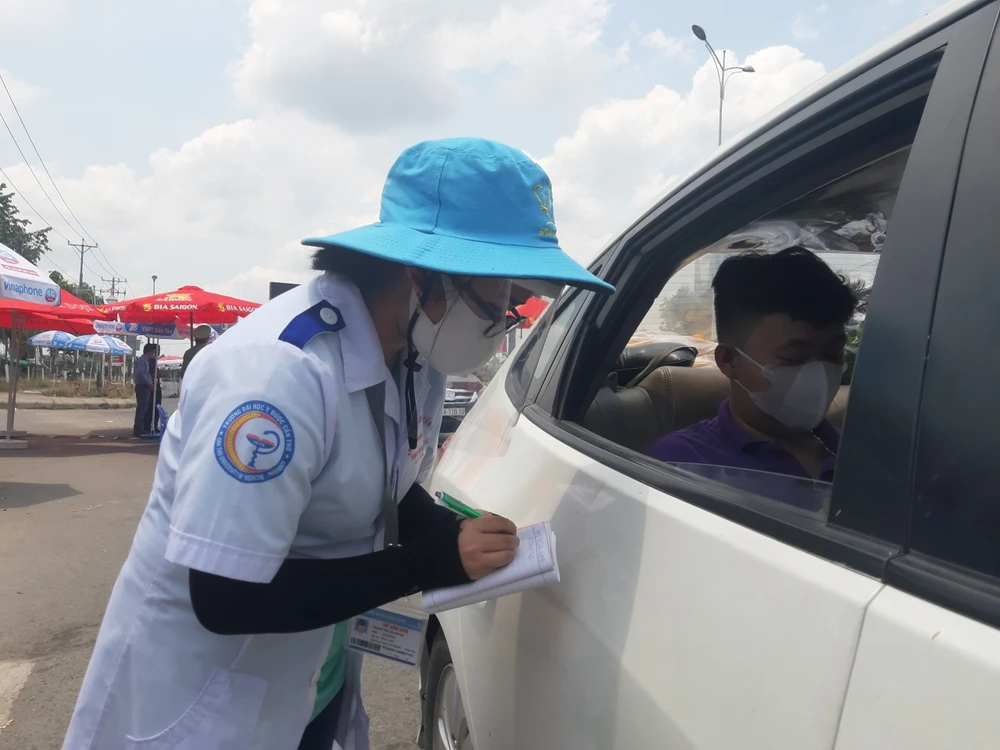 Các sinh viên trường y được tăng cường đến các điểm hỗ trợ lấy thông tin y tế những người chưa khai báo y tế. Ảnh: HẢI DƯƠNG