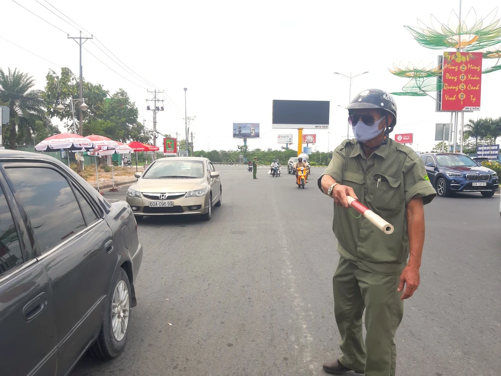 Dân quân tự vệ phường cũng huy động đến phục vụ công tác thống kê lượng phương tiện dừng để kiểm tra. Ảnh: HẢI DƯƠNG
