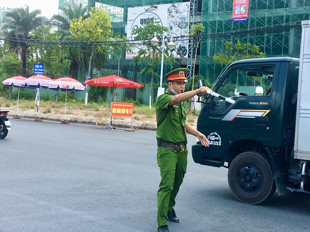 Ngày hứng nắng, đêm chịu sương, CSGT Cần Thơ vẫn tích cực thực hiện nhiệm vụ trong công tác phòng, chống dịch COVID-19. Ảnh: HẢI DƯƠNG