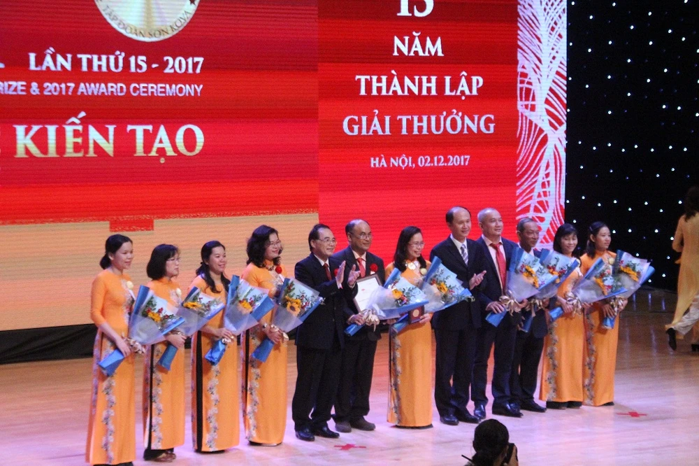 Giải kiến tạo tập thể còn lại được trao cho tập thể các bác sĩ BV Hùng Vương với sự đóng góp của PGS-TS-BS Huỳnh Nguyễn Khánh Trang - Trưởng khoa Sản - BV Hùng Vương, với công trình “Khởi phát chuyển dạ bằng bóng đôi Foley cải tiến”.