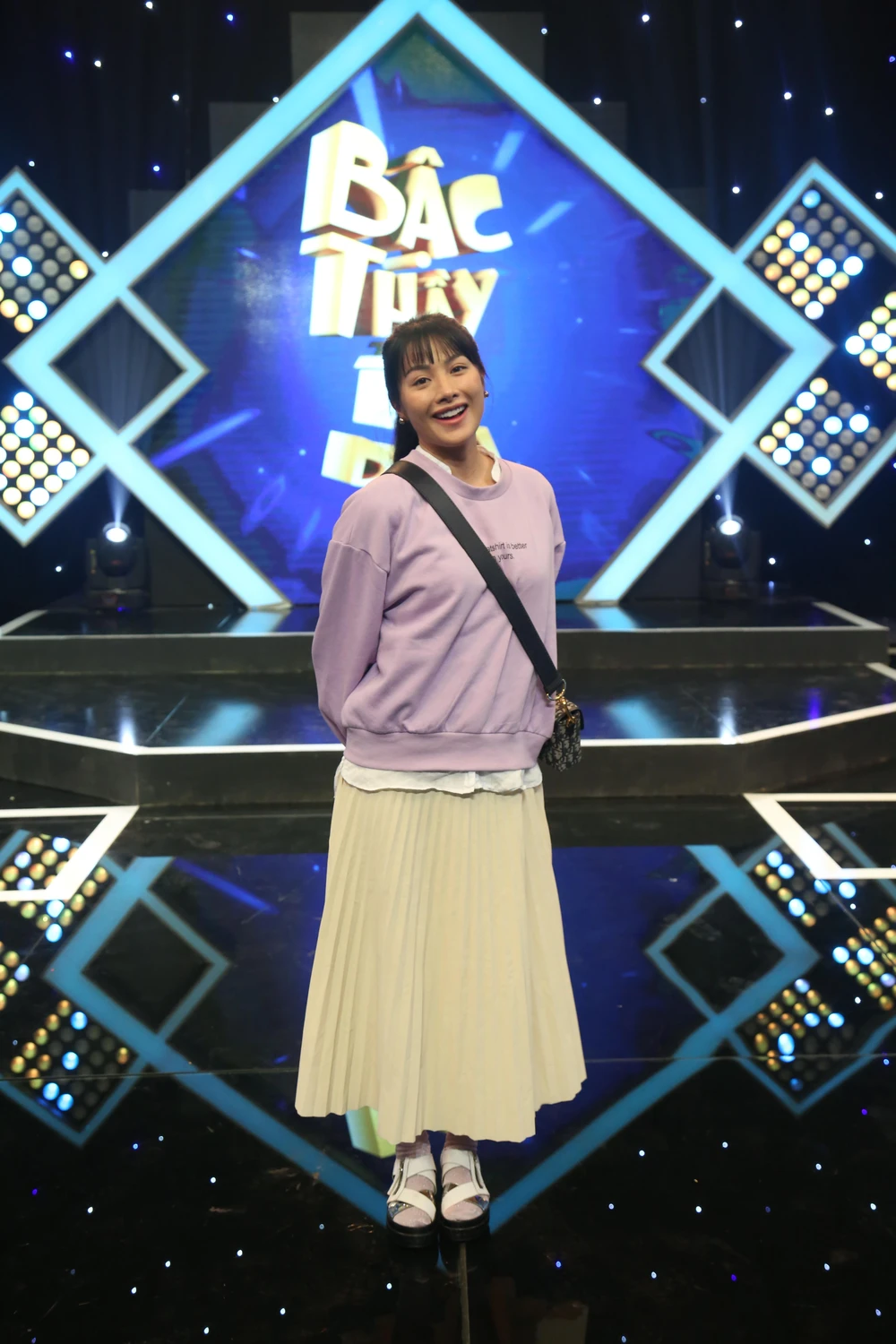 Với lối make-up sương sương cùng mái tóc đen tuyền dài buộc cao càng tăng thêm phần thuyết phục cho hình tượng mà cô nàng muốn mang tới chương trình.