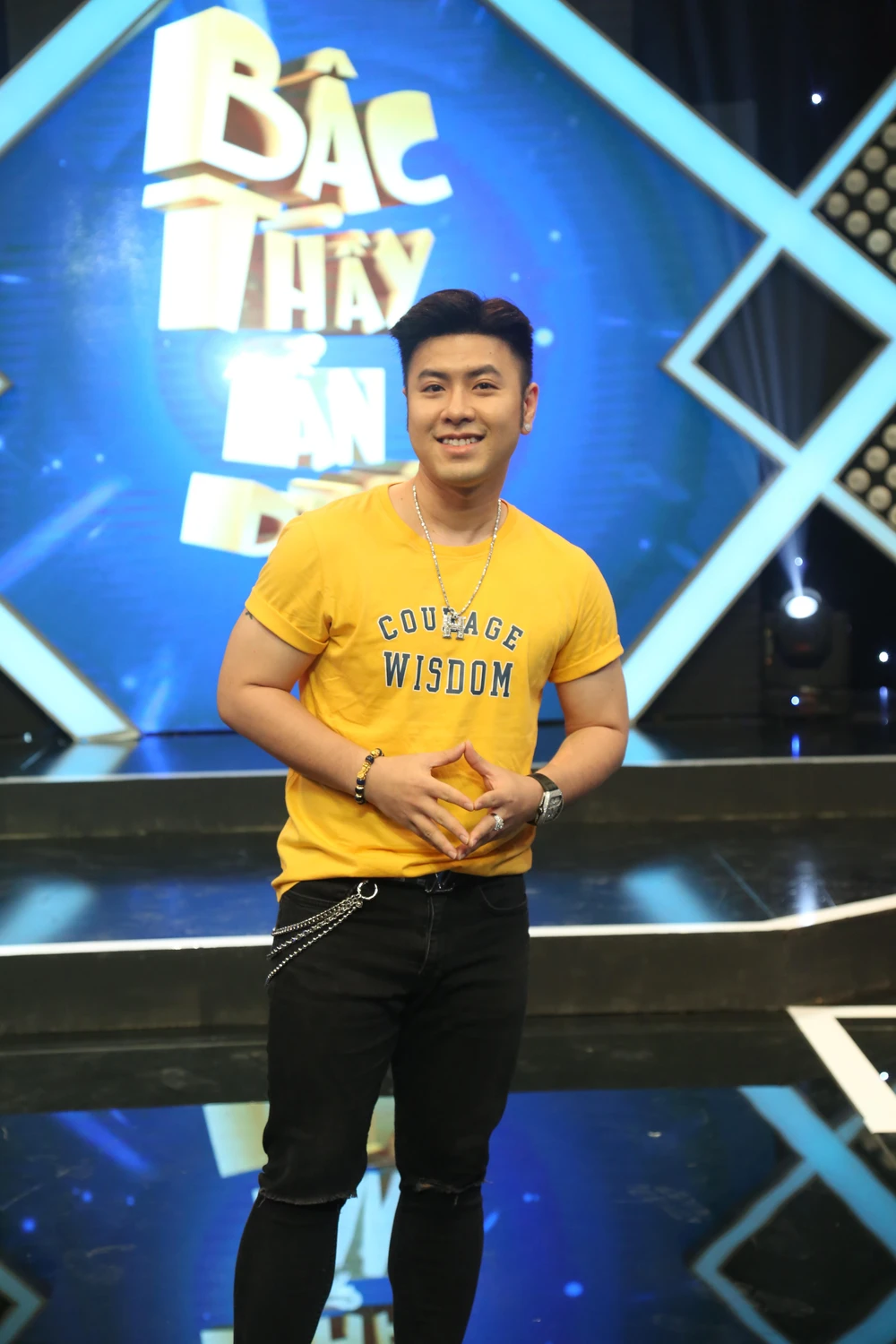 MC Minh Xù trong Bậc thầy ẩn danh. Ảnh: Chương trình cung cấp