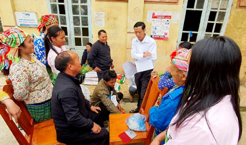 Cán bộ địa phương tại Yên Bái tuyên truyền cho bà con về dịch bệnh COVID-19. Ảnh: Báo Yên Bái