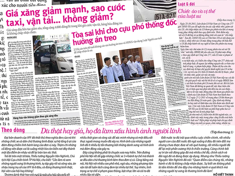 Bài viết “Giá xăng giảm mạnh, sao cước taxi, vận tải… không giảm?” là bài viết ghi nhận việc giá xăng dầu liên tục giảm sâu, tổng cộng 4.000 đồng/lít trong khi giá cước vận tải, hàng hóa đứng im là không chấp nhận được.