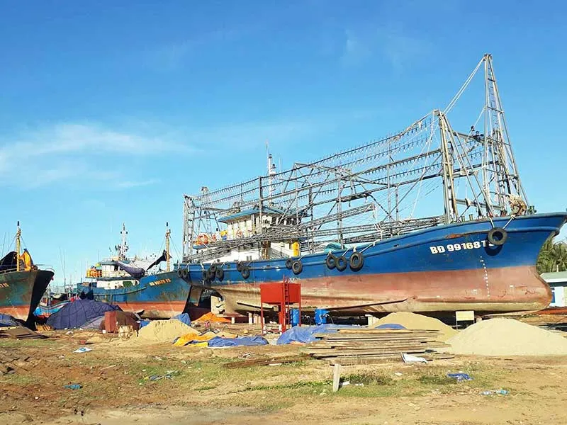 Tàu vỏ thép nằm bờ nhiều tháng liền chờ sửa chữa khiến ngư dân bị thiệt hại nặng. Ảnh: TL