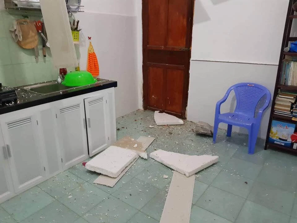 Bê tông, gạch từ tường thành rớt thẳng vào nhà dân, làm hư hỏng đồ đạc. Ảnh do người dân cung cấp