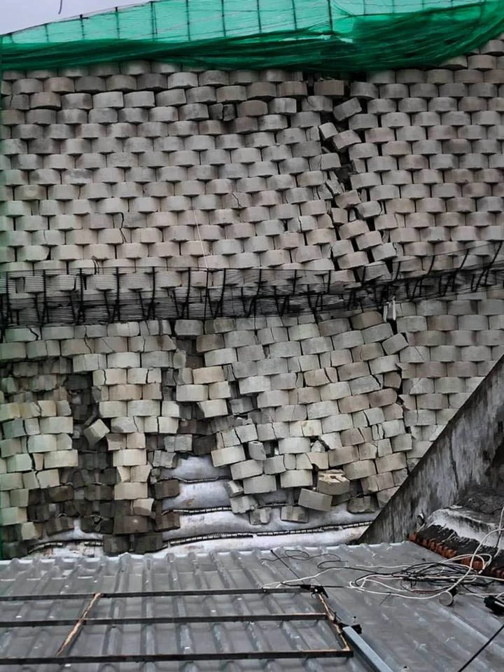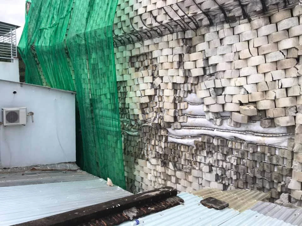 Nhà dân bị gạch, bê tông từ tường thành rơi xuống làm hư hỏng. Ảnh do người dân cung cấp.