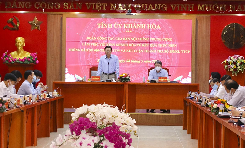 Trưởng Ban Nội chính Trung ương yêu cầu Thường trực Tỉnh ủy Khánh Hòa tập trung lãnh đạo, chỉ đạo các cơ quan chức năng khẩn trương tiếp tục thực hiện các kiến nghị của Ủy ban Kiểm tra Trung ương, Thanh tra Chính phủ.