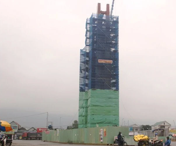 Cho đến khi cơ quan chức năng phát hiện và đình chỉ xây dựng thì "Tháp biểu tượng tinh thần Bảo Lũy" đã được thi công xây dựng lên rất cao. Ảnh: V.LÊ
