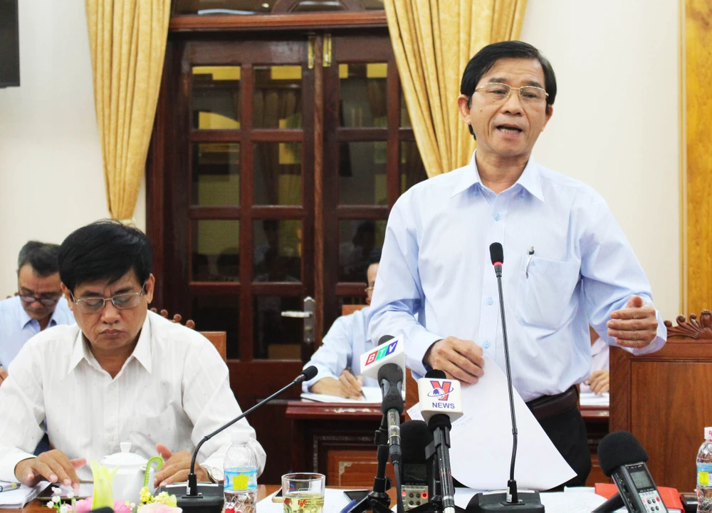 Ông Trần Châu, Phó chủ tịch UBND tỉnh Bình Định (người đứng) yêu cầu công an khởi tố Công ty Đại Nguyên Dương. Ảnh: TẤN LỘC