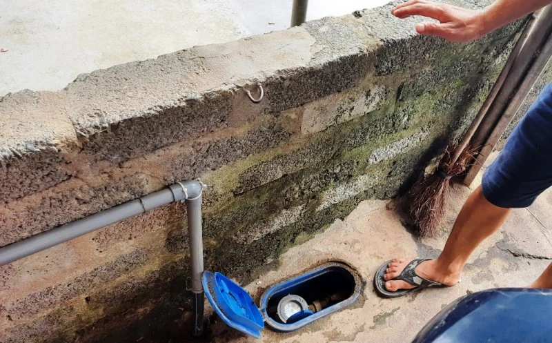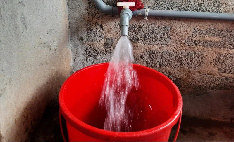 Nước máy đã cấp chảy đến các hộ dân nhưng Nhà máy nước Hòa Sơn chưa được thu tiền bán nước máy. Ảnh: Đ.LAM