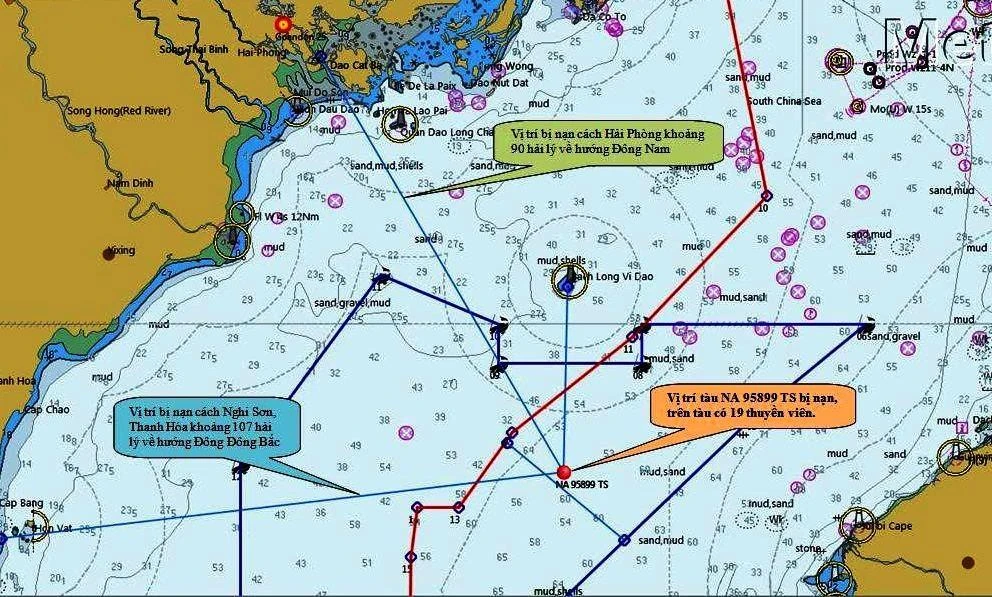 Vị trí các tàu quần thảo, tìm kiếm tàu NA-95899-TS có 9 thuyền viên đang mất tích.