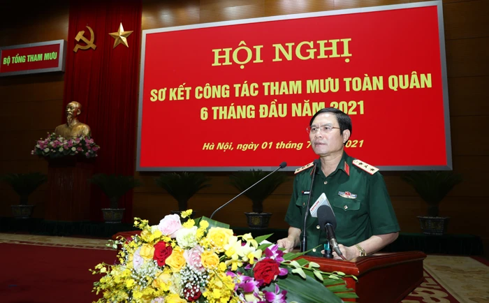Theo báo cáo công tác, thực hiện sự lãnh đạo, chỉ đạo của Quân ủy Trung ương, Bộ Quốc phòng, Chỉ lệnh công tác quân sự, quốc phòng năm 2021 của Tổng Tham mưu trưởng, Bộ Tổng Tham mưu đã chỉ đạo toàn quân hoàn thành toàn diện nhiệm vụ quân sự, quốc phòng sáu tháng đầu năm 2021.