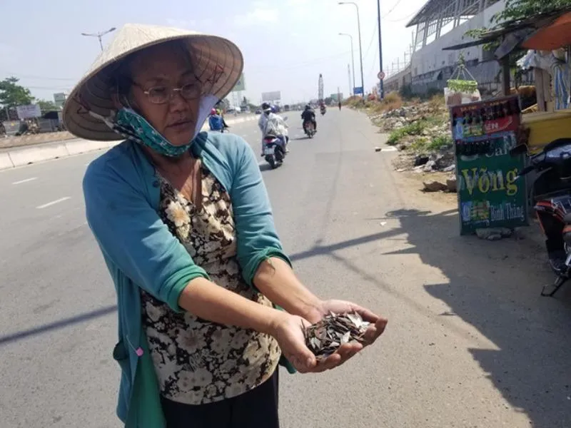 Người dân nhặt được rất nhiều đinh trên quốc lộ 1. Ảnh: Báo Thanh Niên