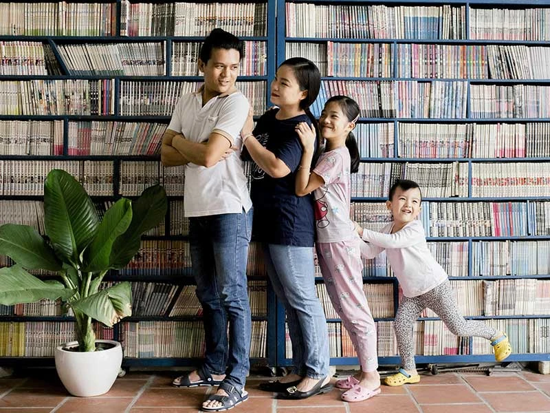 Hai vợ chồng đã lấy lại hạnh phúc bên các con sau những ngày tháng khó khăn. Ảnh: P.Phong