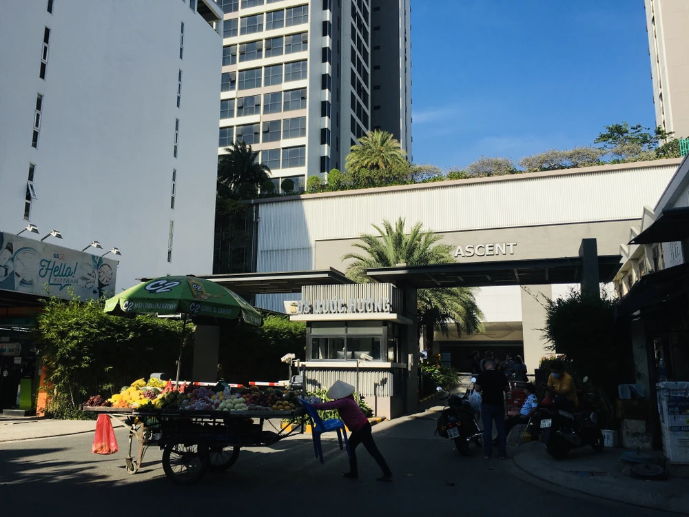 Tại chung cư Ascent Apartment, số 58 Quốc Hương (khu phố 5, phường Thảo Điền, quận 2), dưới chung cư có lực lượng bảo vệ dân phố, cảnh sát giao thông, công an... luôn túc trực. Phía ngoài cổng chung cư, có một số tài xế giao hàng đồ ăn, thức uống đứng đợi khách ra nhận hàng. Một số người nước ngoài trò chuyện với nhau qua thanh gác chắn, họ đứng cách nhau một khoảng rộng và mang khẩu trang đầy đủ.