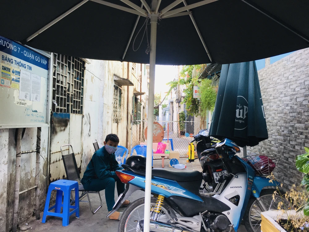 Tại con hẻm nhỏ trên đường Phạm Ngũ Lão, phường 7, quận Gò Vấp, hàng rào chắn được thiết lập, có lực lượng công an và dân phòng túc trực 24/24 giờ. Trước đó, theo kết quả xét nghiệm của Viện Pasteur TP.HCM, một phụ nữ 28 tuổi ngụ khu vực này đã được xác định là bệnh nhân thứ 65 nhiễm COVID-19 ở Việt Nam.
