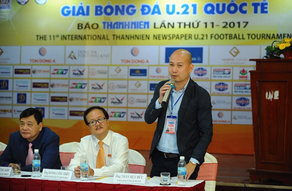 Ông Trần Huy Đức, Trưởng phòng tổ chức thi đấu VFF trả lời báo chí