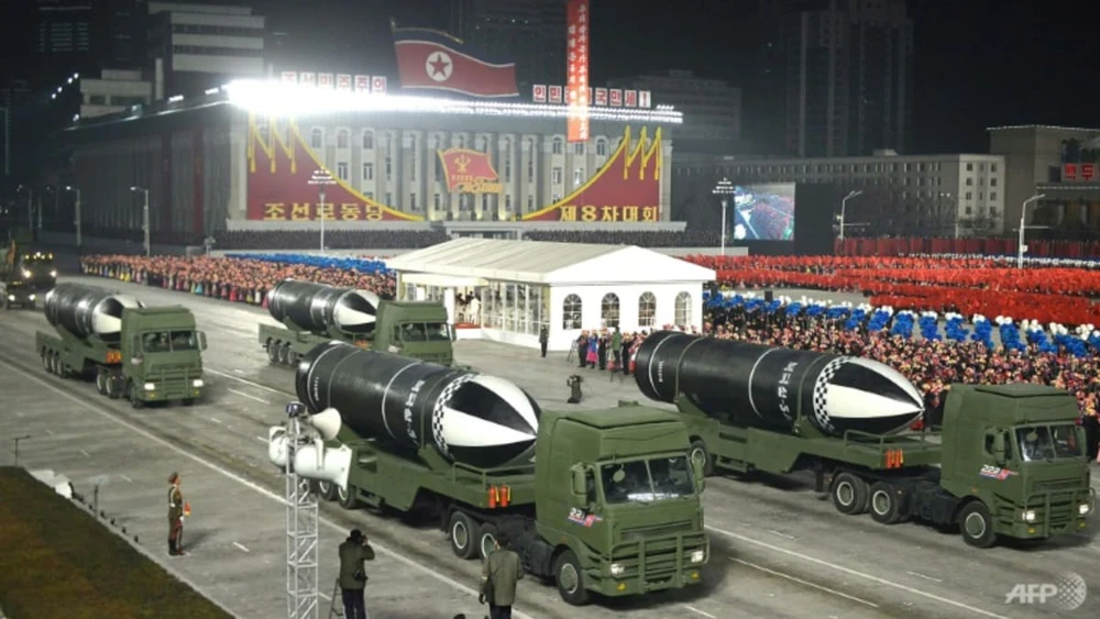 Nguồn tin: Triều Tiên dường như đã tổ chức duyệt binh trong đêm. Ảnh: AFP / KCNA