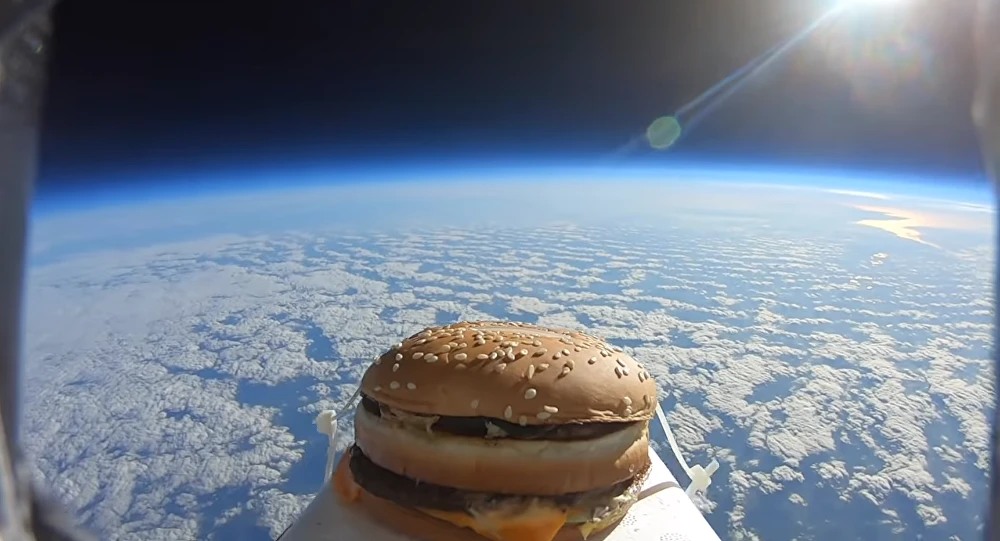 Chiếc bánh burger đạt đến độ cao 40 km cách mặt đất. Ảnh:YOUTUBE