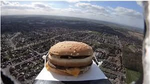 Anh quyết định đi tìm câu trả lời cho những thắc mắc đó. Chiếc bánh burger tội nghiệp được anh phóng lên không trung từ thành phố Sheffield. Nó được buộc chặt vào một chiếc hộp nhựa dẻo, gắn vào khinh khí cầu cùng thiết bị theo dõi GPS. Một máy quay Gopro để ghi lại hành trình của chiếc bánh.