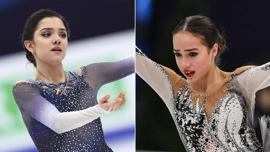 Medvedeva (trái) vừa lập kỷ lục ít phút thì bị đồng đội Alina phá vỡ